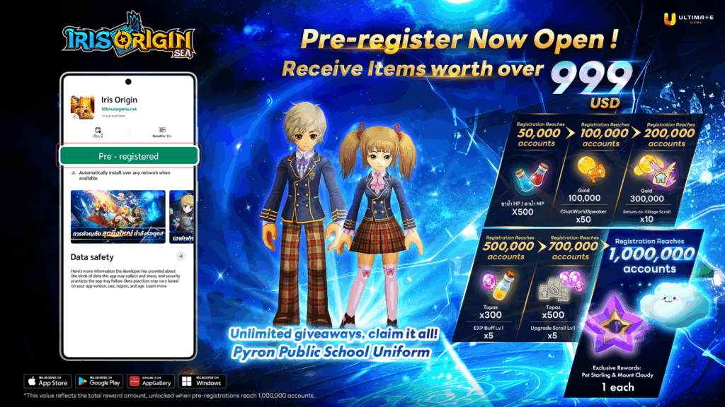 For players who complete pre-registration, stay tuned for the latest news and updates on Iris Origin SEA through the links below, featuring regular announcements and plenty of exciting events.