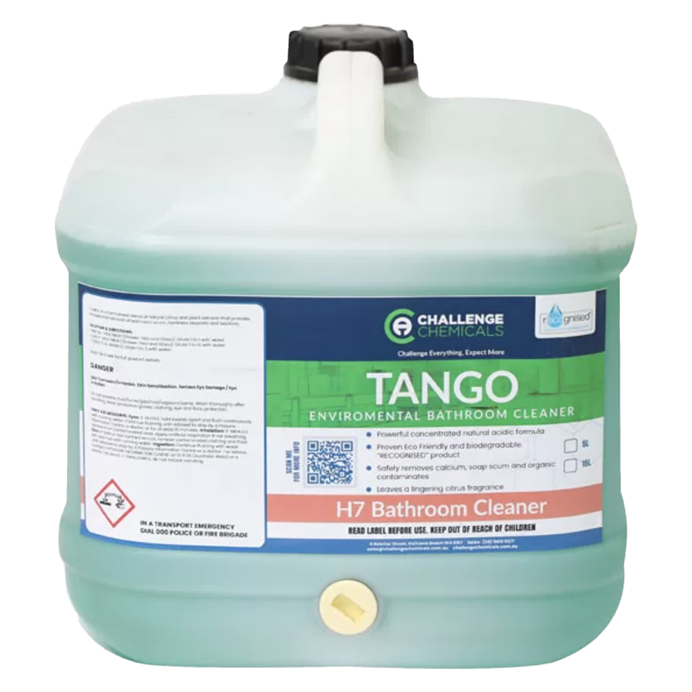 TANGO is a formulated blend of naturally citrus and plant extracts that provides exceptional removal of bathroom scum, hardness deposits and bacteria. Toilet, tile and bathroom cleaner to remove bacteria and mineral deposits.